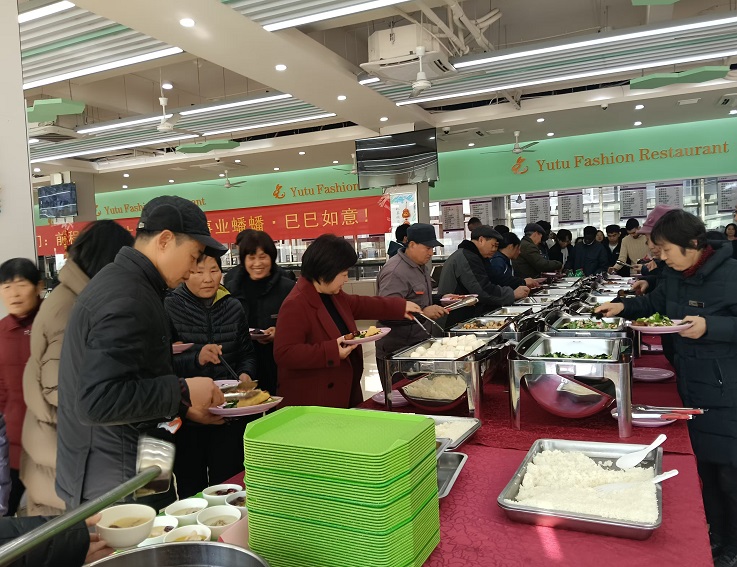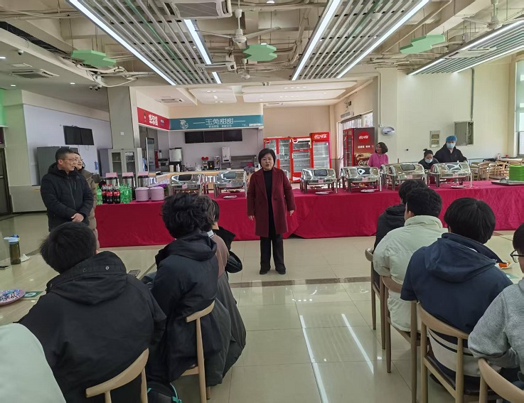 本网讯 祥龙贺瑞辞旧岁,金蛇纳福庆新春。1月28日除夕中午,农历乙巳蛇年春节来临之际,学校两个校区食堂为寒假留守值班人员及留学生们准备了丰盛的午餐。校党委常委、副校长李早,国际交流合作处、后勤管理处负责人及相关部门人员欢聚一堂,共迎新春。