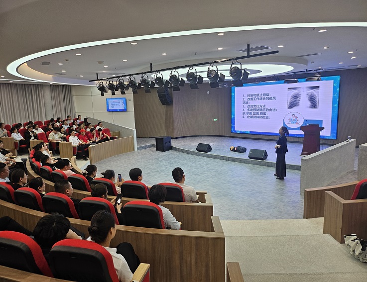 在讲座中,合肥市为民健康教育中心宣教小组宣教副主任卞老师用通俗易懂的语言,结合实际案例,将心肺复苏、人工呼吸、海姆立克急救等理论知识,以及心脏骤停的原因及危害、心肺复苏的最佳实施时机等内容,生动详细地讲解给大家,并对重大疾病及常见职业性疾病预防和改善都进行了细致的讲解。
