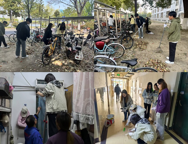 外围卫生清理工作更是同学们展现团队协作精神的舞台。他们手持扫帚、垃圾钳等工具,对公寓周边的绿地、道路、垃圾桶等区域进行了全面清理。同学们分工明确,有的负责清扫落叶,有的负责捡拾垃圾,有的负责擦拭公共设施。经过大家的共同努力,公寓周边的环境焕然一新,在清理过程中,同学们还对垃圾分类知识进行了复习和巩固,进一步提高了环保意识。