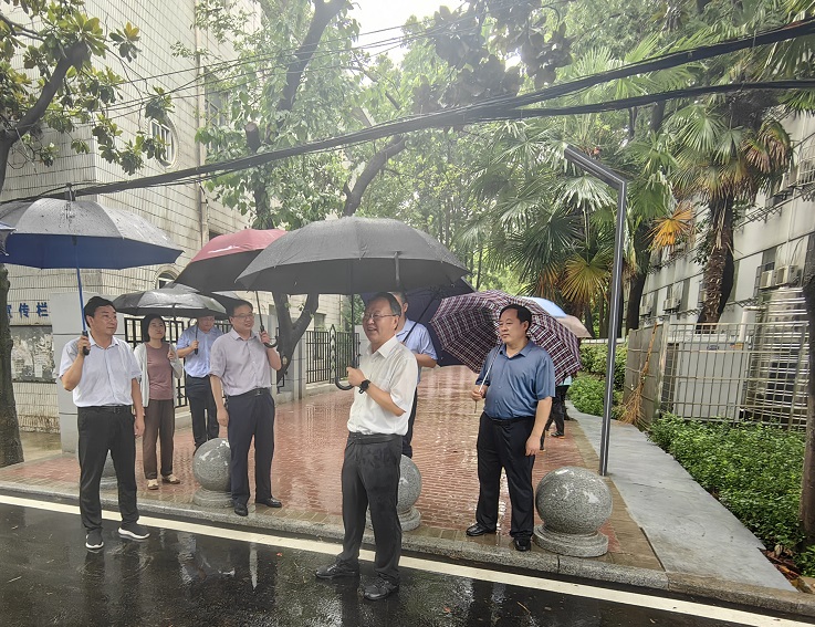 正值暴雨天气,王连贵一行深入金寨路校区实地考察积水点治理工程的建设成效,听取了市水务集团关于整个项目施工的情况汇报。他对这项关乎民生的重点工程实现如期高质量竣工表示充分肯定,对校方与施工单位在工程推进中展现出的密切协作、高效配合给予高度称赞。王连贵强调,当前正处于防汛关键期,务必以“时时放心不下”的责任感抓实汛期安全工作,要始终保持高度警惕,持续关注降雨趋势及强度变化,加强与相关部门的沟通协作,做到早预警、早防范,加强隐患巡查,严格落实责任,切实筑牢校园防汛安全屏障。