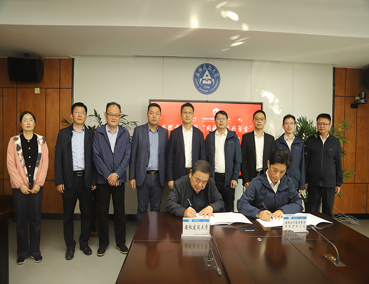 安徽同济建设集团党委副书记、工会主席刘长丰和袁如恩代表双方签订《同济建设奖学金续捐协议》。