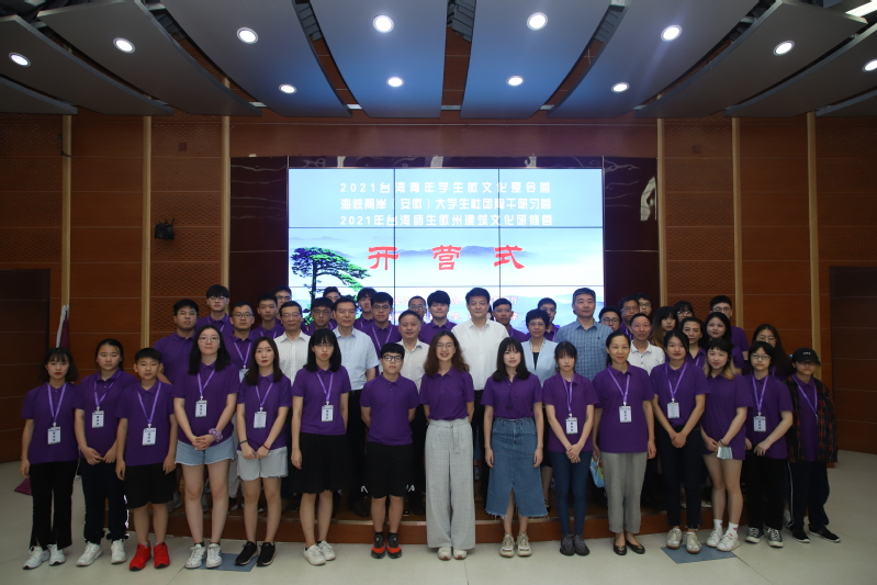 本网讯 7月18-23日,由教育部港澳台办主办的2021年台湾师生徽州建筑文化研修营、由安徽省台办和安徽省教育厅主办的2021台湾青年学生徽文化夏令营等系列活动项目,如期在我校举办。因受境外疫情影响,本次夏令营的营员由现在大陆境内的台湾青年学生组成,主要来自上海、广东、江苏、北京、湖北、安徽等地,共计32名台湾师生参加,我校从土木、建规学院遴选10名学生全程参营。黄显怀副校长出席了7月19日上午的开营仪式、并为营队授旗。