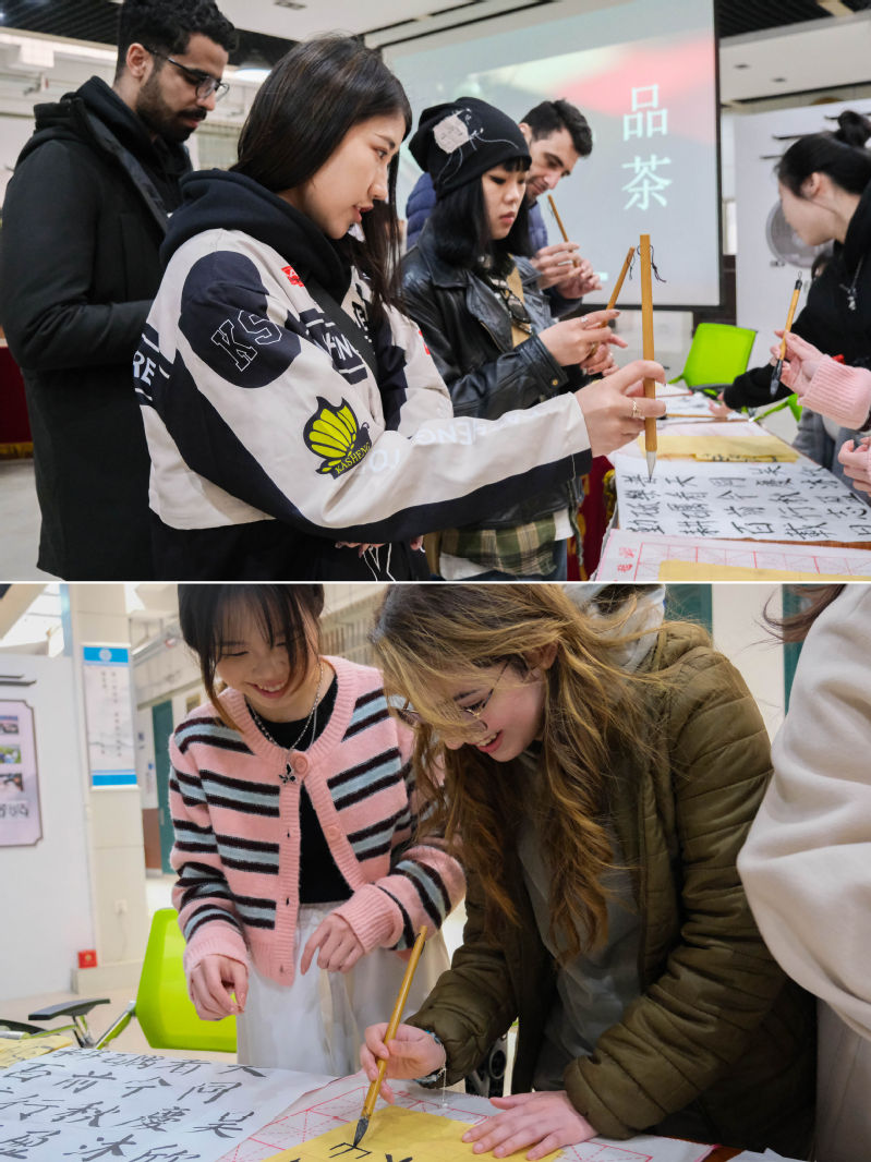 国际交流合作处组织留学生参加“建大学生一家亲,品茶写字话和谐”传统文化交流活动