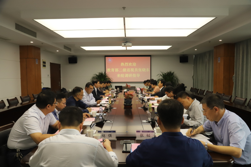 本网讯 9月26日下午,教育部国际司二级巡视员张晓东来到我校,就2023年国际产学研用合作会议、中外双导师研究生联合培养等方面工作召开调研会。省教育厅二级巡视员朱乃韬、省教育厅科研处、省教育厅外事处有关负责同志陪同调研,合肥工业大学、安徽大学、安徽农业大学等7所省内高校相关部门负责人参加了调研会。会议由我校党委副书记、校长黄显怀主持。