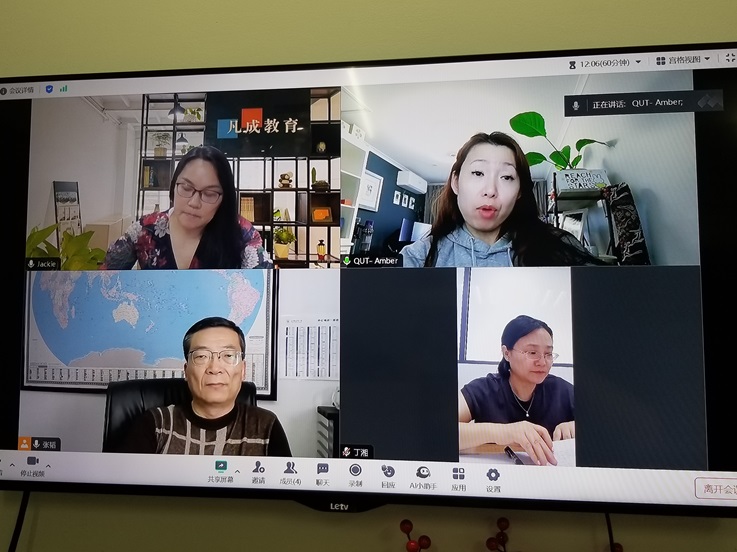 本网讯 711下午,我校与澳大利亚昆士兰科技大学就两校友好合作交流有关事宜召开远程视频会议。澳大利亚昆士兰科技大学国际部中国区域负责人AMBER女士、安徽凡成文化教育有限公司负责人汪丽萍女士及我校国际交流合作处相关负责人出席会议。会议由汪丽萍女士主持。