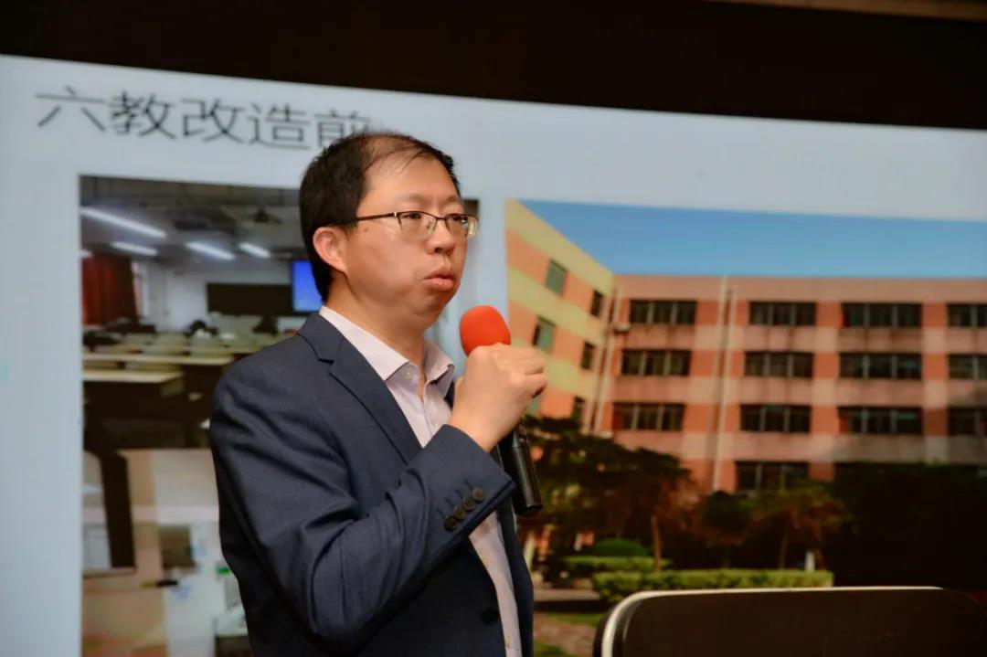 复旦大学基建处李卫国处长以复旦大学第五、第六教学楼修缮工程为案例,作高校智慧教室建设初探主旨发言。在教学方法已经发生改变、当前空间已经影响教学的背景下,合理整合提升硬件配套已是必不可少。带着“打造一座集历史与未来、科学与艺术,具有文化气息与青春活力的一流智能化教学楼”的设计愿景,复旦大学基建处、教务处和设计院三方做项目共同的“设计者”,克服重重困难,注重考虑细节点与人性化,最终项目落成投入使用,深受广大师生的欢迎和喜爱。