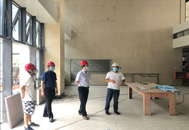 校领导认真查看了实验实训综合楼工程进度、安全文明施工及防疫措施落实情况,要求施工、监理单位及现场校方管理人员,一定要按照进度计划认真组织施工,加强施工安全管理,严格落实上级关于建设工地防疫防控措施;参建各方齐心协力,加快施工进度,确保工程高质量,确保按期竣工验收合格交付学校投入使用。(文/图:张涛;审稿:黄镭)