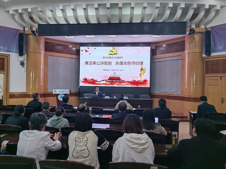 本网讯 为进一步推动党风廉政建设,教育党员干部筑牢防腐拒变的思想防线,营造清风气正、廉洁自律的工作氛围。11月8日,校纪委副书记、纪委办主任张兆许到经管学院开展“新时代廉洁文化基层行”宣讲活动。经管学院全体教职工参加宣讲会,会议由学院党委书记陈国中主持。