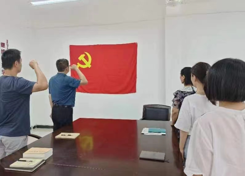 随后,全体党员面向党旗再一次重温入党誓词。庄严的誓词时刻提醒每位党员时刻牢记自己是一名共产党员,时刻牢记入党的初心,时刻牢记党的宗旨,坚定理想信念,增强党性修养,发扬党的优良传统,发挥党员的先锋模范作用,为学校改革发展事业奋斗终身。