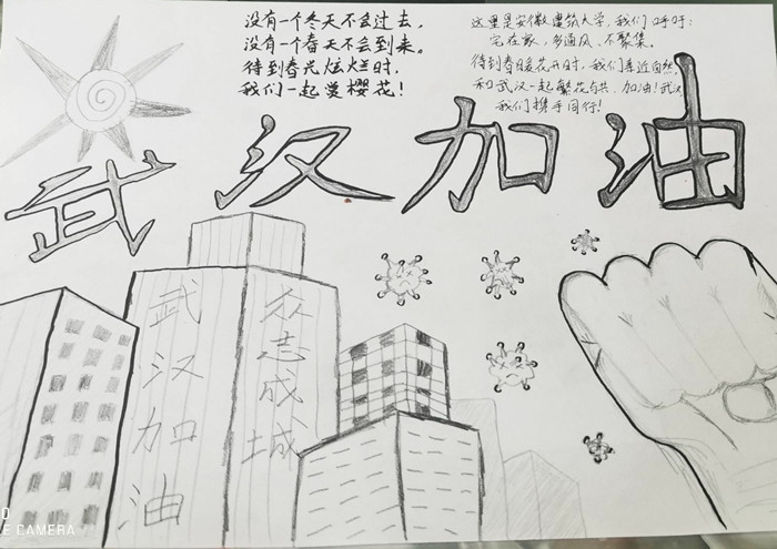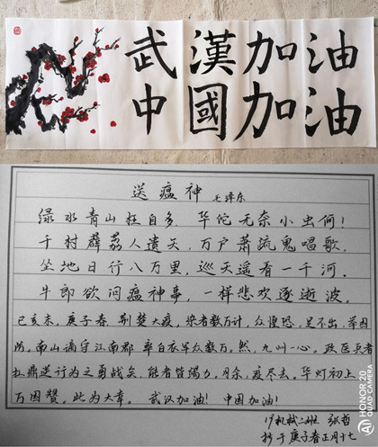 机电学院多数学生能写会画,呆在家里也是做贡献,拿起画笔为前方战士加油,为武汉加油,为祖国加油。