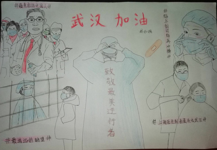 本网讯 这个春节假期过得很漫长,疫情扩散爆发至今,还没有完全控制,但爱和希望比疫情蔓延得更快。自接到延迟开学通知以来,机电师生积极响应国家和省市区及学校的防疫行动倡议和号召,在做好自我防护的基础上,依托微信、QQ、今日校园等网络方式对新型冠状病毒感染的预防知识进行宣传和学习,机电学子用暖暖的画笔和实际行动为参加防疫工作的医护工作者助威,为武汉加油。