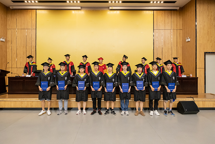 教师代表为所有参会学生颁发学位证书、扶正流苏并合影留恋。(文/图:吴汉平 于瞳 莫镇宁 审稿:徐军)