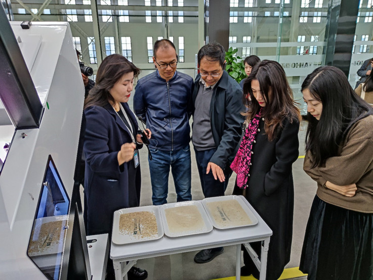 机电学院一行在会后参观了泰禾智能光电的N1展厅,在工作人员的带领下,对其设计生产的各类机型,包括色选机、果蔬分选机、煤炭干选机、包装机等进行了现场考察。(文/图:侯亚伟 吴汉平;审稿:徐军)