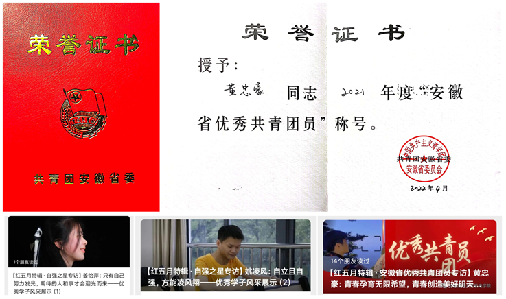 青年榜样是一种向上的力量,一面向善的旗帜。机械与电气工程学院2019级机械设计制造及其自动化专业学生黄忠豪荣获“安徽省优秀共青团员”称号,这不仅是黄忠豪同学的个人荣誉,更是对学院“党建带团建”工作的肯定。为充分发挥青年榜样的示范引领作用,在这个火红的五月,机电学院新媒体围绕校园学习生活、成长感悟,以专访的形式集中展示了一批优秀机电学子的典型事迹,鼓励学生学习榜样,勇担时代使命。