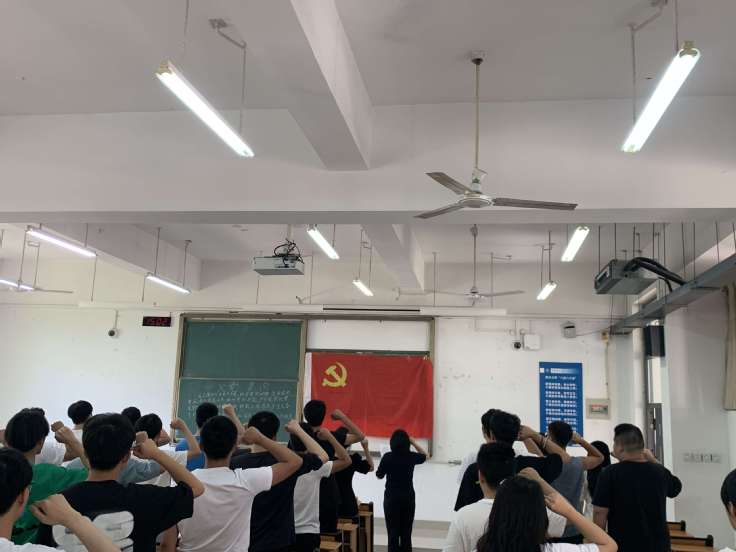 学工办主任、学生第二党支部书记江侠老师领誓,与会全体毕业生党员一同重温入党誓词。