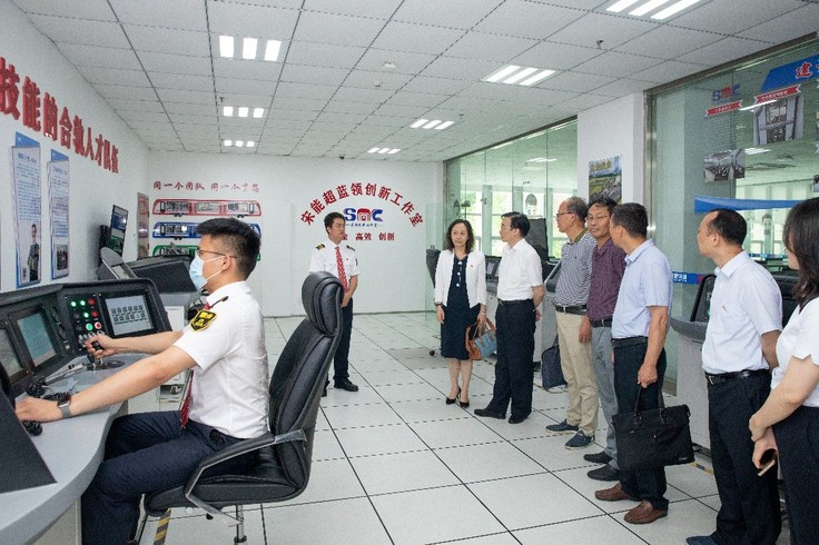 在合肥轨道交通,孙道胜参观了市轨道交通集团模拟驾驶室、“宋能超蓝领创新工作室”,在轨道交通控制中心调度大厅,深入了解了地铁运行背后工作人员的辛勤付出。