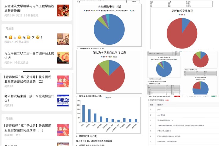 思想引领,学风建设永远在路上。机电学院以网络为载体,确保思想引领不间断。借力新媒体平台,寒假期间公众号开设“青春榜样‘寓’见优秀”榜样领航专栏,推送重要讲话开展政治理论学习;辅导员召开线上交流会,聚焦学生主责主业,一起讨论并制定寒假居家学习计划,明确学习任务和学习目标,引导学生利用假期时间夯实专业基础;大一新生开展《学期状态问卷调查》,以全面了解学生大一学生入校以来的学习与生活状态,以及对未来的规划,以便进一步针对共性问题进行分析,有针对性地做好人才培养工作。