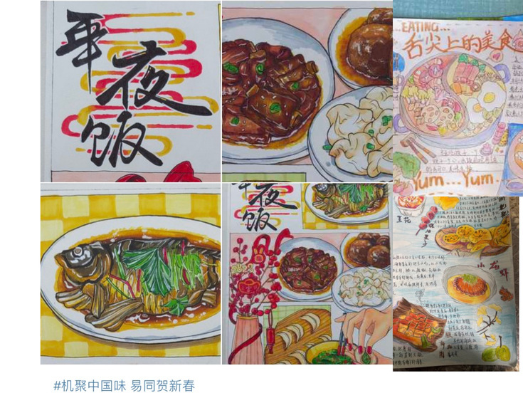 意存笔先,画尽意在,画由心生,一笔一画都是内心深处情感的表达。鼓励同学们将艺术与自身情感交融,机电易班工作站举办了“纸绘美画”绘画活动。同学们以饱满的热情,挥毫泼墨、舞动丹青,精心创作了一幅幅版面精美、内容丰富的绘画作品,有圆润饱满的饺子热气腾腾的火锅,美味可口的红烧鱼,香味浓郁的红烧肉,还有高高悬挂着的腊鱼腊肉腊肠等等。我手绘我心,我心抒我情,每一幅画背后都是同学们对家乡美食的喜爱,对中国美食的骄傲。