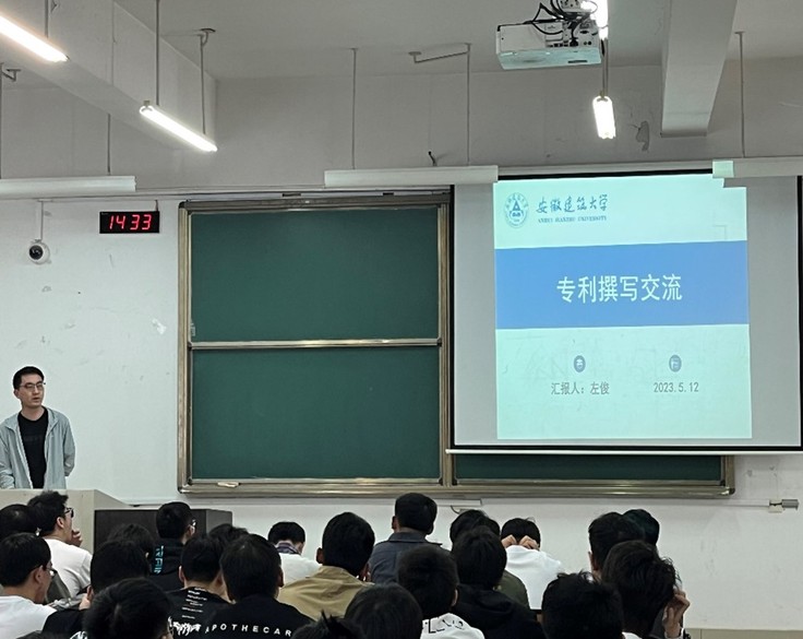 左俊同学从专利的申请流程方面做了经验分享,介绍了专利申请的每一个具体环节;张杰同学从专利名称以及关键词的检索方面做了经验分享,并为同学们介绍了一些查询发明专利的常用网站;曹伟同学从如何撰写发明专利方面做了经验分享,强调在撰写时要突出专利申报书的创新点;毛如轩同学介绍了如何根据审查意见修改专利申报书内容。