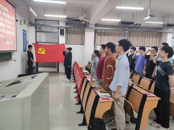 为增强党员的责任感和使命感,支部开展“重温入党誓词,牢记初心使命”主题党日活动。全体党员佩戴党员徽章,面对鲜红党旗,举起右手、握紧拳头,重温入党誓词,一字一句许下铮铮誓言,追忆入党初心,永葆共产党员的政治本色。