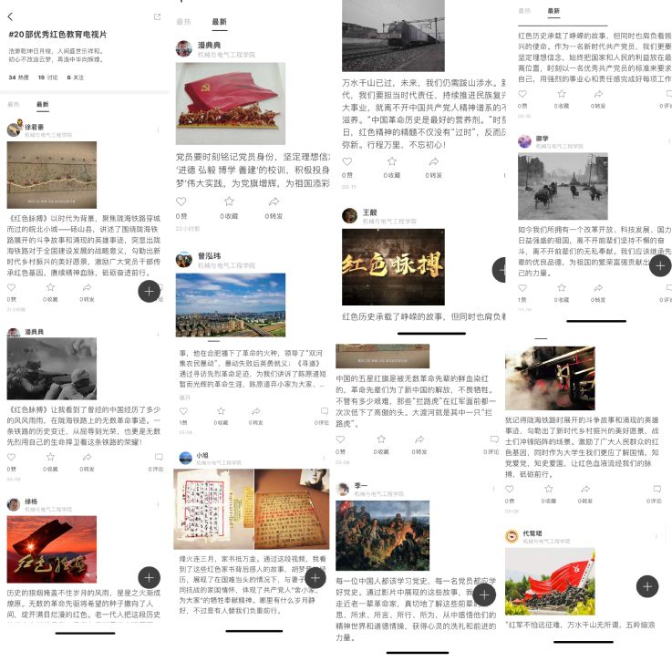 观影结束后,各位党员积极在今日校园·易班平台畅谈感想。19工业设计专业的毕业生党员徐君豪写道:“《红色脉搏》聚焦陇海铁路穿城而过的皖北小城——砀山县,讲述了围绕陇海铁路展开的斗争故事和涌现的英雄事迹,突显出陇海铁路对于全国建设发展的战略意义,勾勒出新时代乡村振兴的美好愿景。广大党员要传承红色基因,砥砺奋进前行。”19机电专业的毕业生党员潘典典写道:“《红色脉搏》中的英雄事迹激励我们要时刻铭记党员身份,发扬斗争精神,勇于攻坚克难,书写新的时代篇章。”