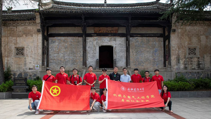 本网讯 奋斗是青春最亮丽的底色,行动是青年最有效的磨砺,有责任有担当,青春才会闪光。为深入开展学习贯彻习近平新时代中国特色社会主义思想主题教育,将大学生思政教育与专业教育、劳动教育有机结合,涵养青年学生家国情怀,推动乡村振兴取得新进展。7月6日至9日,机电学院党委副书记何鹤立带领暑期社会实践团队师生一行17人以“设计下乡赋能乡村振兴,传承薪火探寻红色足迹”为主题赴淮南、金寨开展暑期社会实践活动。