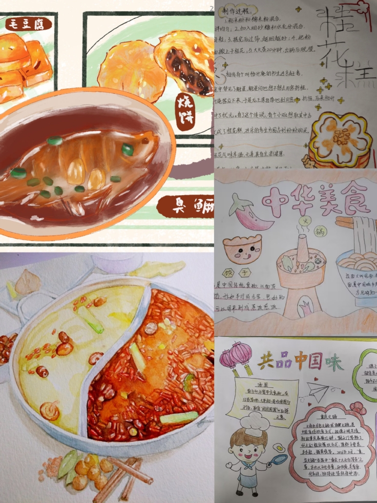 “美食不可辜负”是多少人心中的信条,纸笔跃动,中华优秀传统文化以独特的形式绽放出别样魅力。“纸绘美画”活动鼓励大家将过年期间看见的美景美食用画笔记录下来。同学们都以其独特的视角和想象力,描绘出一幅幅色彩鲜明、形象生动的画卷。无论是街头巷尾的张灯结彩,或是农贸大集的传统小吃,每一幅画中浓浓的年味都扑面而来,幸福感也随之会涌上心头。