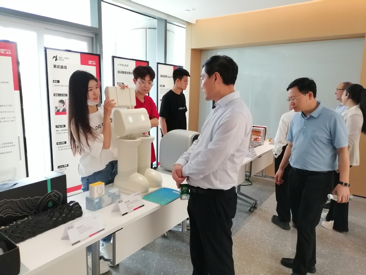 5月7日,松山湖XBotPark机器人产业基地发起人李泽湘教授对与会领导专家的到访表示热烈欢迎,带领大家参观了基地展厅、实验室、新工科教育案例展示区、共享工厂案例展示区等,介绍了基地的发展历史、人才培养理念、创新团队孵化流程及孵化成果等。