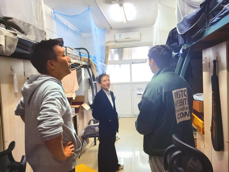 26日,学院党委副书记何鹤立带队走访了2#、14#、18#、20#等学生公寓,询问学生学习、生活近况,叮嘱同学们保持良好的学习规律,维护好和谐整洁的宿舍环境。