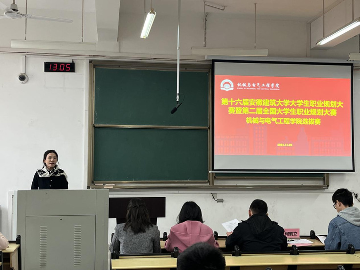 本网讯   为提高大学生职业生涯规划与就业指导工作水平,增强大学生生涯规划意识,11月20日,机电学院举办大学生职业规划大赛学院预选赛,邀请中盐安徽红四方锦邦公司吴宁老师、校就业处方健老师、袁红艳老师、校团委岳琦老师、马克思主义学院任亚若老师担任评委。