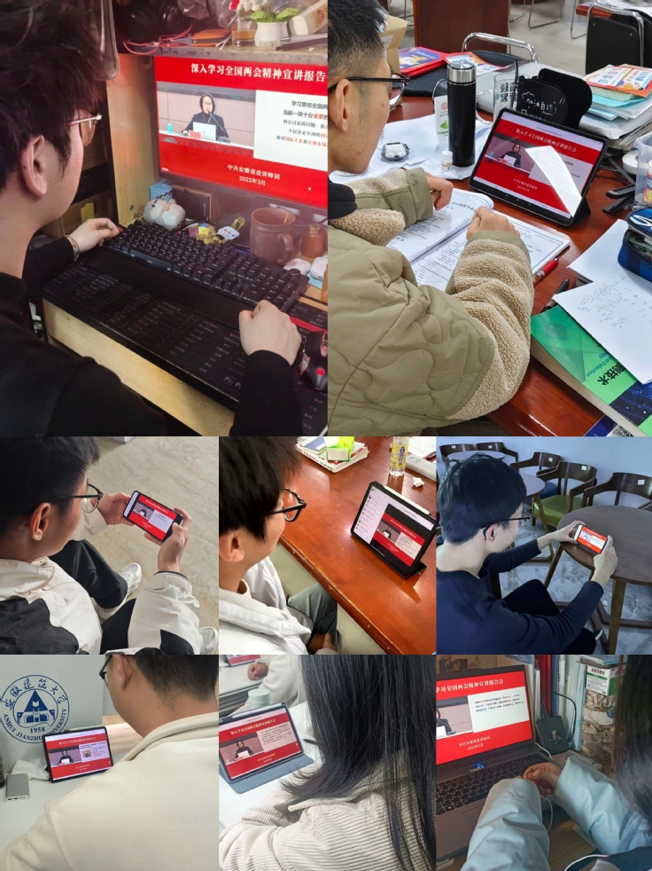 3月18日,党支部组织学生党员线上收听收看学习贯彻2025年全国两会精神专题宣讲报告会。报告会上,吴梅芳教授结合自身参加第十四届全国人民代表大会第三次会议的所见所闻、所思所感,以第一视角从大会基本情况、大会的主要精神和安徽代表团参会情况三个方面,结合习近平总书记“两会”期间重要讲话精神、李强总理所作的《政府工作报告》进行了深入解读,让党员们对两会精神有了更直观、更深刻的理解。
