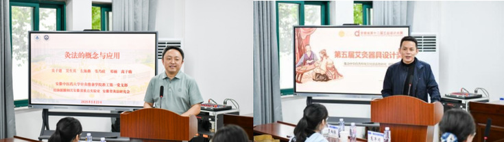本网讯 5月23日,安徽省第十二届工业设计大赛专项赛事——第五届艾十二杯灸具设计大赛暨两校联合设计工作坊在机电学院拉开帷幕。安徽中医药大学针灸推拿学院副院长吴子建教授、安徽省中医药科学院针灸经络研究所副所长吴生兵研究员一行,亳州市艾可舒医疗科技有限公司董事长孙傲、艾十二品牌创始人杨兆萱、马鞍山市工业设计协会执行会长刘峰、机电学院副院长黄磊教授及工业设计系师生代表共同出席了启动仪式,工业设计系主任刘牛主持启动仪式。
