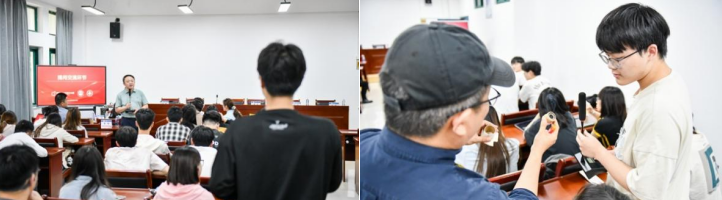 启动仪式上,黄磊致欢迎辞。他表示,学院始终重视产教融合与跨学科交流,致力于为学生搭建多元的学习平台。吴子建教授作了题为《灸法的概念与应用》的专题讲座,系统阐释了艾灸疗法的医学价值,并就未来艾灸器具研发和用户体验优化提出了关注点;孙傲董事长分享了题为《艾灸器具创新设计》的行业见解,探讨了当前市场需求与设计趋势。讲座现场互动热烈,学生踊跃提问,围绕设计创作思维、多学科融合路径、团队协作机制等实际问题与相关负责人展开深入交流。