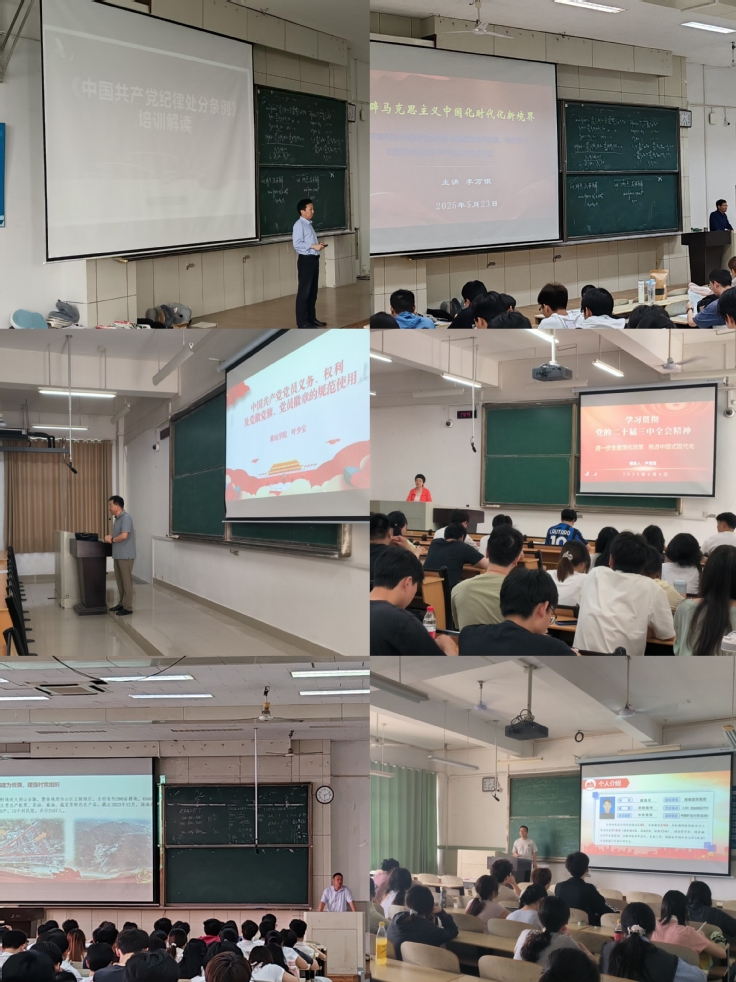 校纪委副书记、纪委办主任张兆许深度解读《中国共产党纪律处分条例》;马克思主义学院党总支书记、副教授李万银带领学员深入学习习近平新时代中国特色社会主义思想;机电学院党委书记叶少宝系统阐释了中国共产党党员的义务和权利,并详细讲解了党徽党旗、党员徽章的规范管理使用;电信学院党委组织员尹雪莲传达并解读党的二十届三中全会精神;学生处副处长、舒城县汤池镇汤池村驻村原第一书记方绍正开展乡村振兴专题实践教学;机电学院2021级机械专业学生黄浩天以“时代殷殷嘱托,青年砥砺前行”为题作案例交流。