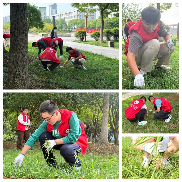 在校园公共绿化区,另一组同学正仔细清理落叶和杂草。秋风微凉,汗水却早已浸湿了同学们的衣襟。2025级机械电子工程专业的吴海涛同学指着刚刚打理完的绿化带说:“看着整洁美观的校园环境,心里特别有成就感。这让我对爱校荣校有了更真切的理解。”同学们在劳动中不仅美化了校园,更深化了文明意识。
