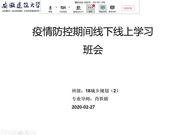 本网讯 为深入贯彻落实学校、学院党委疫情防控工作的要求和部署,切实守护好广大学生的生命安全和身体健康,推进新学期学习有序开展,根据学院疫情防控工作领导小组的战略部署,充分发挥网络育人、网络思想引领的功能,我院专业导师们纷纷把主题班会“搬”到网上,通过QQ群聊、“腾讯会议”等网络平台分别开展了线上班会。
