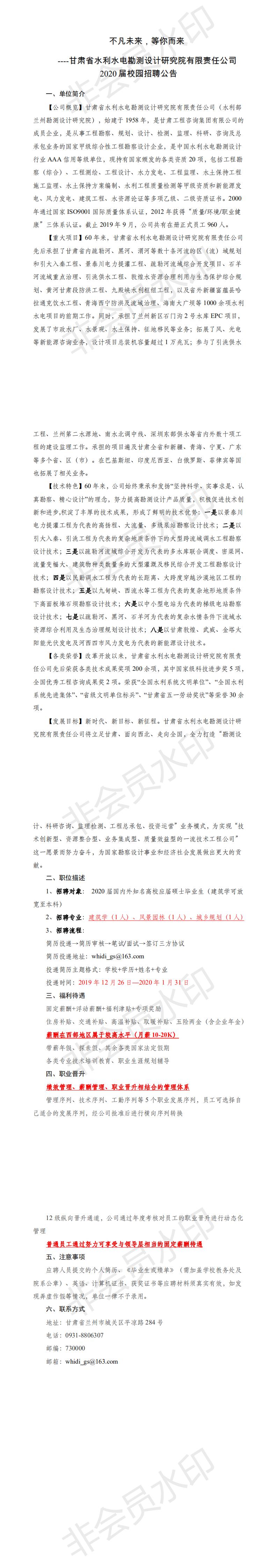 2020招聘信息:甘肃省水利水电勘测设计研究院有限责任公司