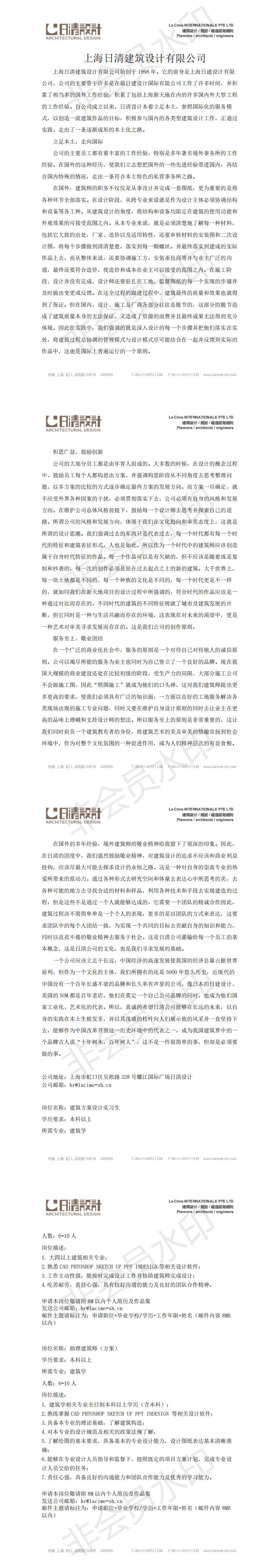 2020招聘信息:上海日清建筑设计有限公司招聘信息