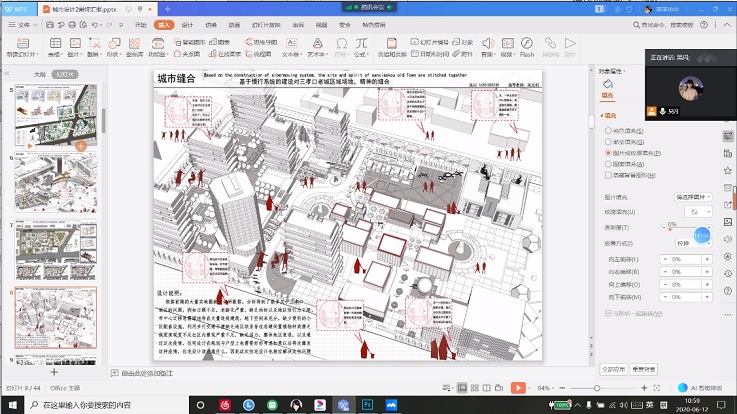 本网讯 为确保疫情期间“停课不停学”,切实保障教学秩序稳定。6月12日,建筑与规划学院建筑学专业四年级城市设计2课程作业举行了线上公开评图。评图以在线直播汇报的形式进行,69名同学分成四个小组同时进行答辩。每组有三位答辩老师,由建筑系四年级课题组老师、规划系老师和设计院专家组成,特邀安徽省城乡规划院副院长、注册城乡规划师奚星伍,中汇设计院合肥分公司副总经理、注册城乡规划师周全,东南大学建筑设计院有限公司一级注册建筑师何永乐,安徽地平线建筑设计事务所有限公司主创建筑师生健,共四名校外专家交流指导。
