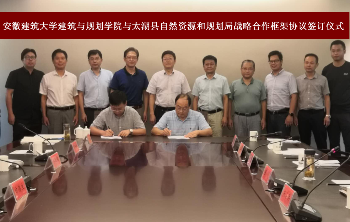 本网讯  8月12日,建筑与规划学院党委书记唐劲松率规划系主任顾康康、教师肖铁桥一行安庆市太湖县与太湖县自然资源和规划局签订战略合作框架协议并看望学院挂职教师王爱。当天,学校党委书记方潜生率学校组织部等在太湖县看望挂职教师,并与太湖县县委、县政府领导一起出席了签约仪式。
