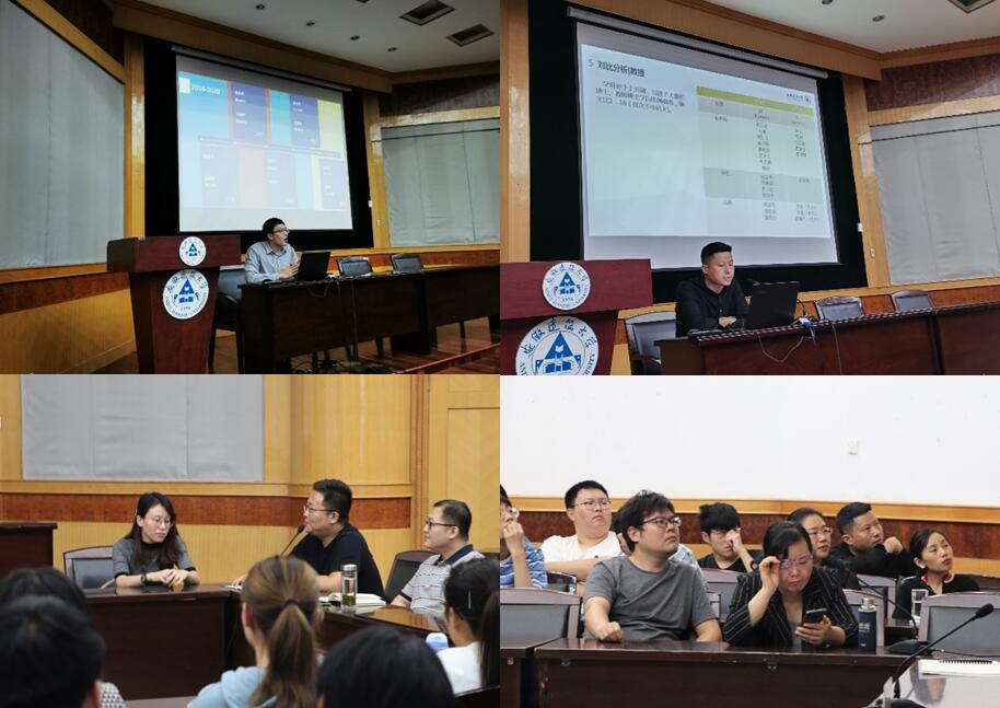 本次研讨会设置了五个环节,首先辅导员王昊禾老师总结介绍近5年年本校建筑学专业考研、就业等情况,从报考院校、定位、全国各类建筑院校情况等不同角度进行了深入全面的分析,最后给学生们分享了考研相关平台以及注意事项;其次2016级专业导师韩玲老师做从复习方法等角度给学生相关建议,鼓励学生一定要有毅力,坚持到底。建筑系副主任桂汪洋从师资、学科特点、毕业后就业去向等多个方面给出了省内建筑学高校考研报考建议。来自各大名校的博士青年教师为报考省外考研的学生提供了交流咨询;最后副院长王薇总结本次研讨会,再次强调同学们要根据自身的定位,选好报考第一院校的重要性。