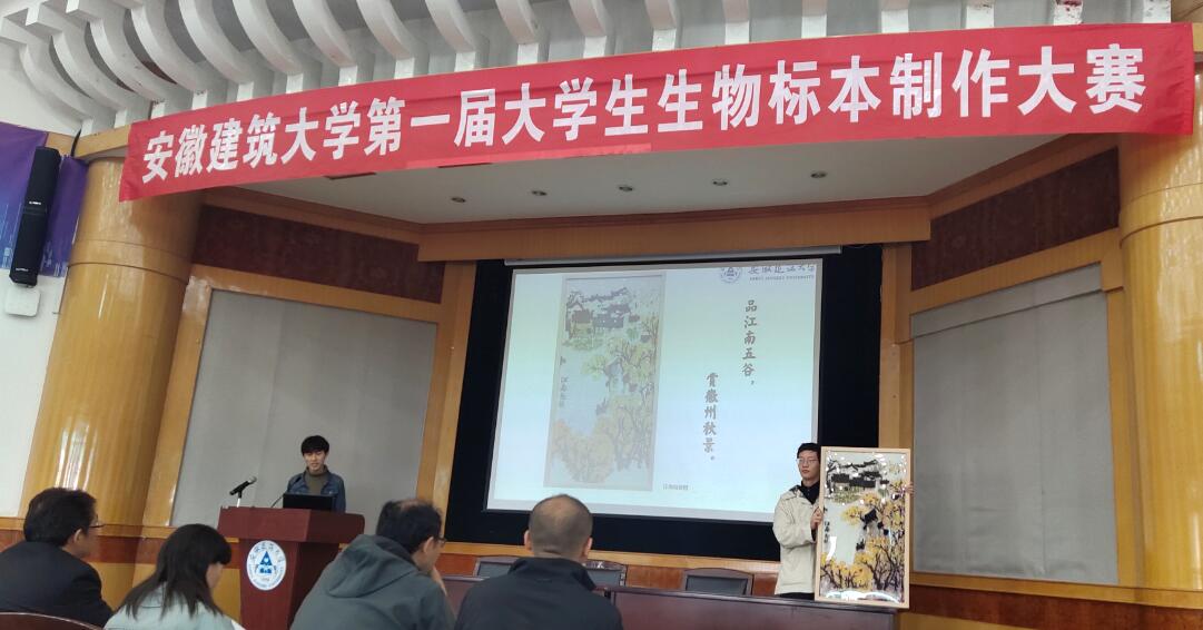 本次大赛经校内外专家评审、标本制作视频复审,最终作品《贰零贰零“亿”心一疫》获一等奖;作品《江南知秋》、《俏荷汤》、《一朝天堑变通途》分获二等奖;《生命共同体》、《一品徽州》等五组作品分获三等奖;《重生》等八组作品分获优秀奖。其中一、二等奖获得晋级2020年安徽省大学生生物标本制作大赛比赛资格。