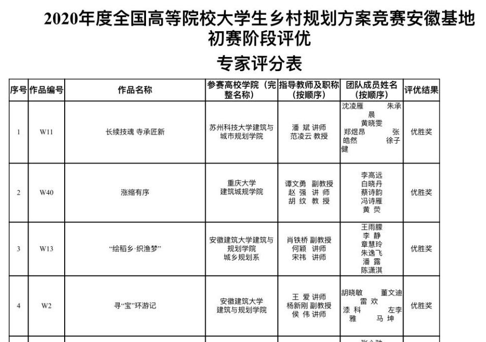 【学科专业竞赛】建规学院规划系获2020年度全国高等院校大学生乡村规划方案竞赛(安徽基地)初赛获得“两优”