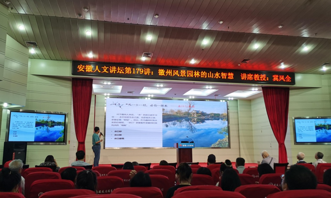 本网讯 经学校社科联与安徽省社科联积极对接、认真筹备,2021年5月9日下午15时,《安徽人文讲坛》在安徽省图书馆学术报告厅举行第179讲,我校冀凤全教授应邀作客讲坛,主讲“徽州风景园林的山水智慧”。《安徽人文讲坛》是由安徽省社会科学界联合会、合肥市社会科学界联合会、新安晚报社和安徽省图书馆共同主办,讲坛已经举办十五周年,代表我省人文讲坛的最高水平。