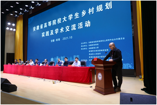 会上,教务处处长储金龙教授,作为中国城市规划学会乡村规划与建设分委会委员、安徽省普通高校土建类专业合作委员会秘书长进行了致辞,对安徽科技学院承办该项活动所做的一切工作表示感谢,同时指出本次活动的成功举办,将对我省高校乡村规划教育教学、乡村规划专业人才培养和学科建设产生积极作用,进一步促进高校、地方政府、社会组织、相关企业在乡村振兴领域中加强合作,助推城乡规划专业教育与我省乡村振兴战略联结更加紧密。