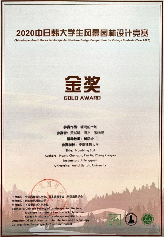 【学科专业竞赛】建规学子参加中日韩风景园林大学生设计竞赛荣获金奖