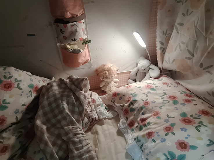 床铺作为寝室中最重要的部分,既是同学们身心休憩的港湾,更享受着那份属于自我的空间。每位同学都用心装扮自己的床铺,力求打造属于自己的一方小天地。