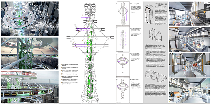 本网讯 5月2日,由eVolo杂志举办的国际竞赛“2022年摩天大楼竞赛”公布评选结果,获奖名额包括一、二、三等奖各1名以及荣誉奖20名。我校建规学子陈开宇、林勇、李子奕、陶志鹏团队合作完成的《The city chloroplast: a skyscrapers that absorbs CO2 and converts it into starch》,在全球427项竞赛作品中脱颖而出,获得了该国际竞赛颁发的荣誉奖奖项。