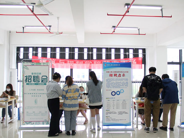 本网讯 搭建企业招聘、学生就业供需平台,518日,建筑与规划学院举办2022届毕业生就业专场招聘会。安徽省建筑设计研究总院、安徽省城建设计研究总院、安徽三建工程建设研究院、中建工程设计有限公司、中铁合肥建筑市政工程设计研究院、山东建筑大学设计集团安徽分公司、深圳市建筑设计研究总院有限公司合肥分院、浙江城建规划设计院合肥分院等17金牌单位应邀参加招聘