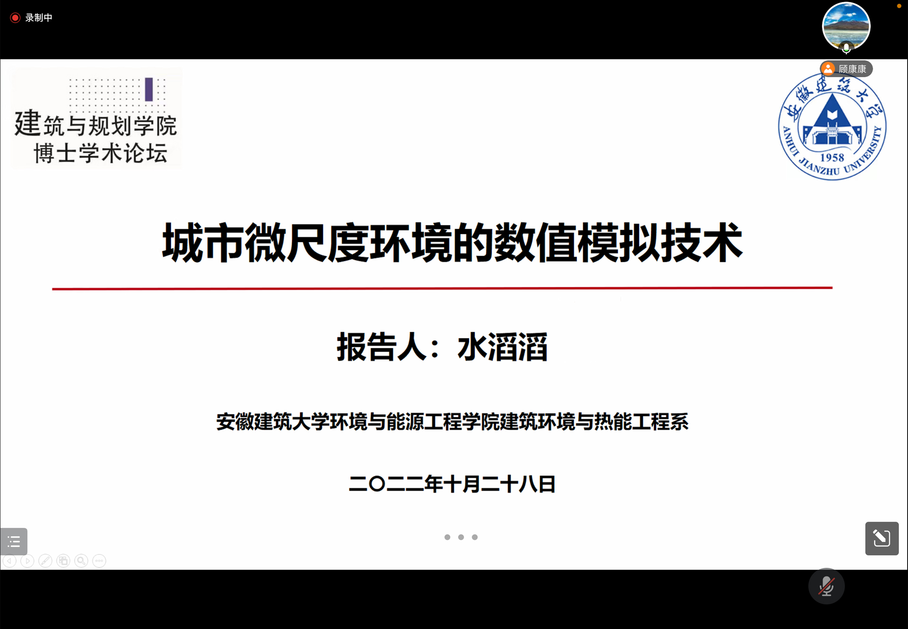 本网讯  20221028日,建规学院在线上举行了第二期博士学术论坛。会议邀请了日本大阪大学博士叶南启老师,中国林业科学研究院博士姚侠妹老师以及哈尔滨工业大学博士水滔滔老师进行个人科研成果分享。顾康康副院长主持会议,学院青年教师、在校研究生共160余人参加了本次论坛。